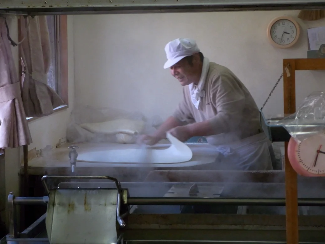 お店では休憩もとる暇のないほど絶え間なくお客様がおられましたが、抜け出すようにとった休憩時間にセイゴさんに連れて行って頂いた、製麺所を兼ねたセルフ式の店が本場感むんむん。店主のおじさんがリズム良くうどんをこねる姿に見とれ、その音が心地よく感じたのでした。